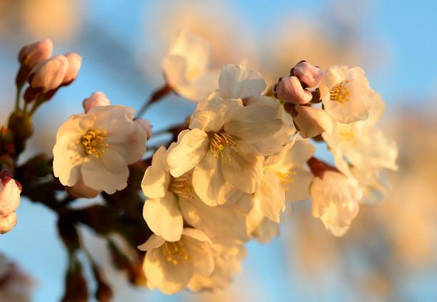传说樱花本来只有白色,而那些壮志未酬的武士选择在他们喜爱的樱花树下了结自己的生命,鲜红的血缓缓的渗进泥土里,把樱花的花瓣渐渐染成了红色,樱花的花瓣越红,说明树下的亡魂就越多。它的花语是“高雅,质朴纯洁的爱情”。