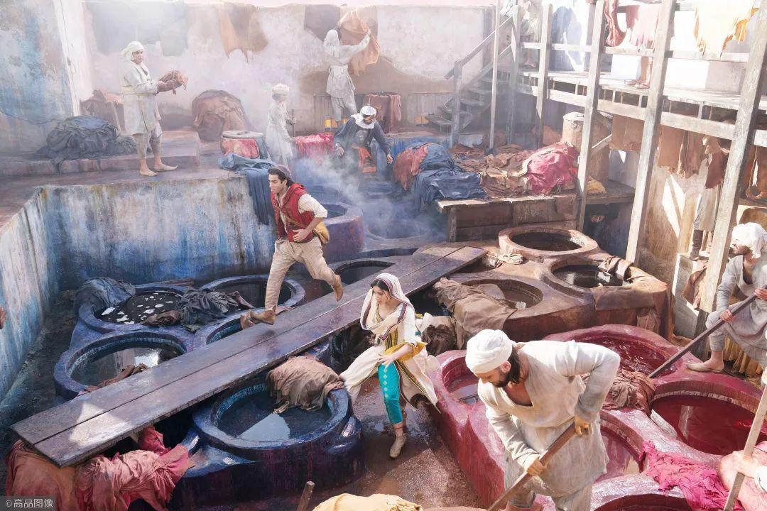 真人版《阿拉丁》根据1992年的同名经典动画改编,借助电脑特效的渲染,从街头卖艺人到色彩缤纷装束的商贩,从望不到尽头的大漠到华丽宫殿,等同于再现了动画版的奇幻世界。
