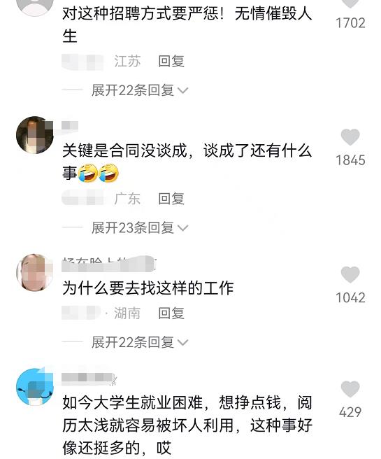 有网友说:都提前说过了,大学生就不该去。有网友说:这就是为了赚快钱的后果,怎么好意思报警?也有网友说:这是合同没谈成,否则就是另一个故事了。