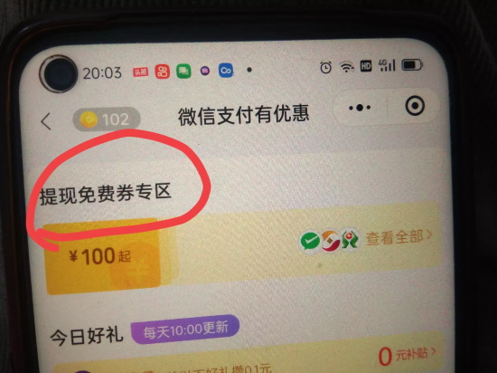 如果这些东西我们不需要,那么我们就向下滑,我们那么就可以看到有一个提现免费券专区的功能,点击查看全部,(如上图所示)