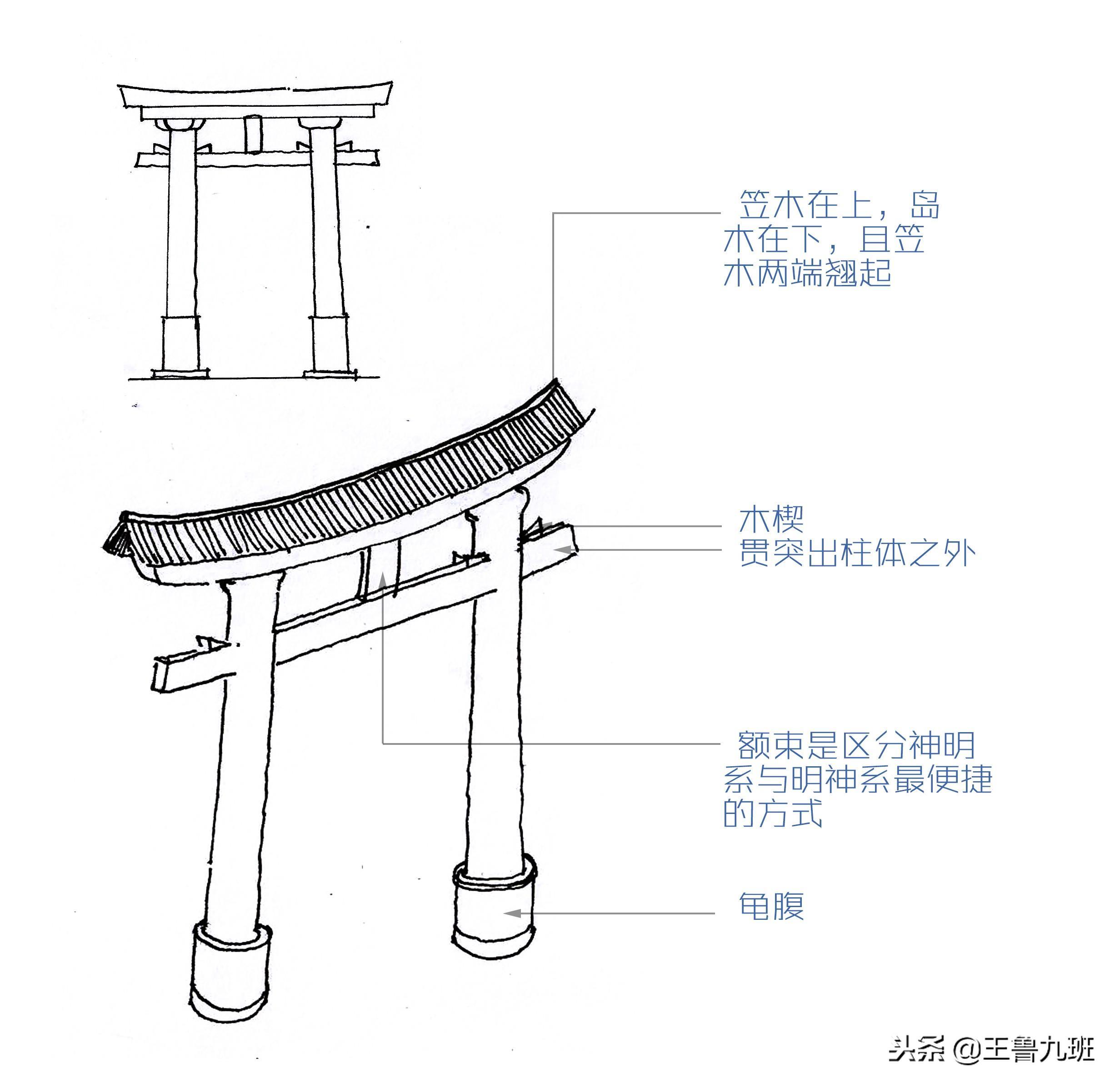 作为神社入口的明神系鸟居在制式上也存在微妙的差别。鄙人将各式明神系鸟居总结为三种主要的样式,认识这三种样式基本上就能通晓所有明神系鸟居的样貌了,以后撸剧追番的时候也能看出那些建筑场景的门道来。