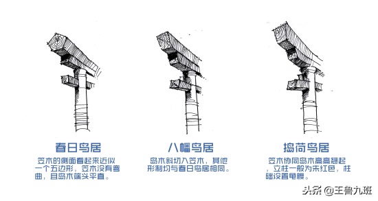 鸟居的形式大体分为两种:神明式和明神式(瞪大眼睛看区别),二者之间在笠木制式上区别极大,也有着各自不同的象征意义。