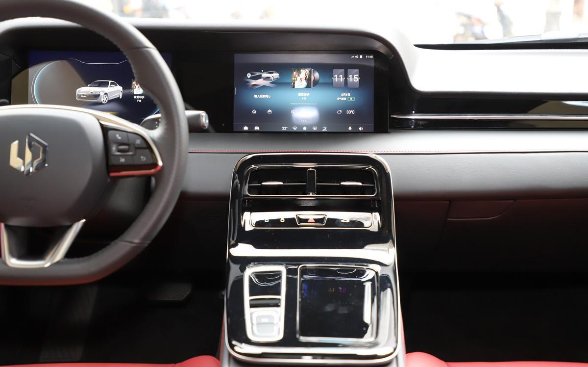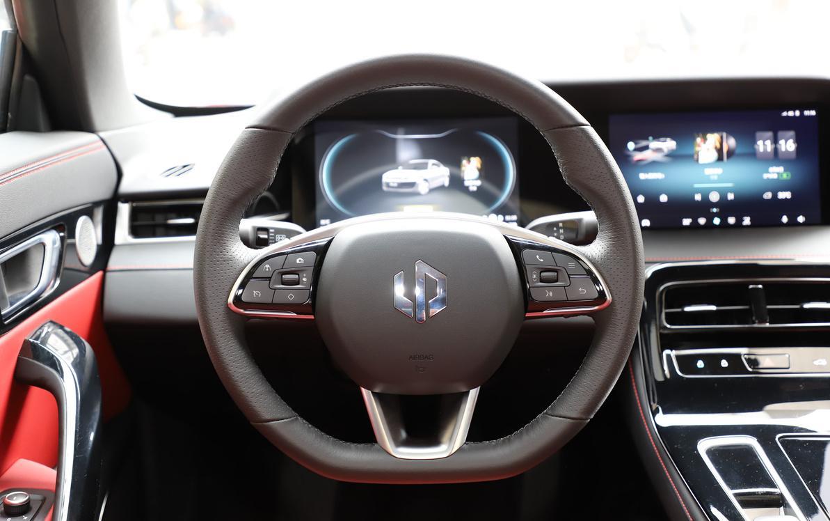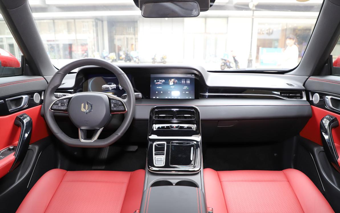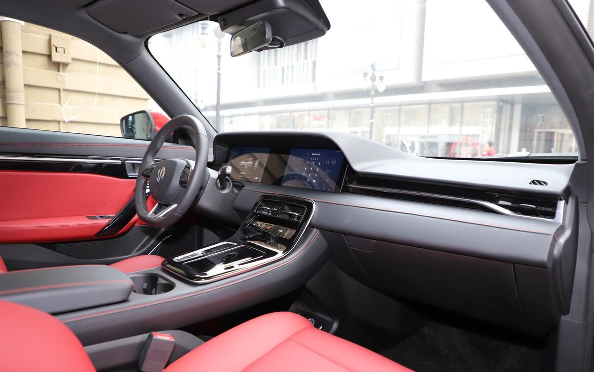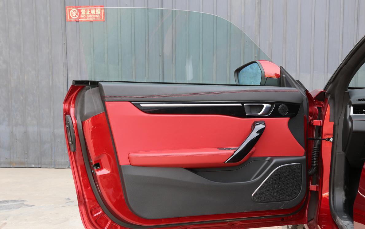 进入车内之后,我对这车的好感会提升一些。首先是打开车门的方式就非常具有仪式感:我只需将手指伸进门缝中的一个凹槽内,这时车辆会自动识别你手指静脉的活体生物特征,来验证你的身份,三秒之后就能打开车门。对于一些理工男和极客来说,这样的科技配置有着致命的吸引力。然后,坐进车内,我立刻就被这红黑搭配的内饰设计、充满战斗气息的鲜红跑车座椅,以及精致、简约的中控设计所吸引了。