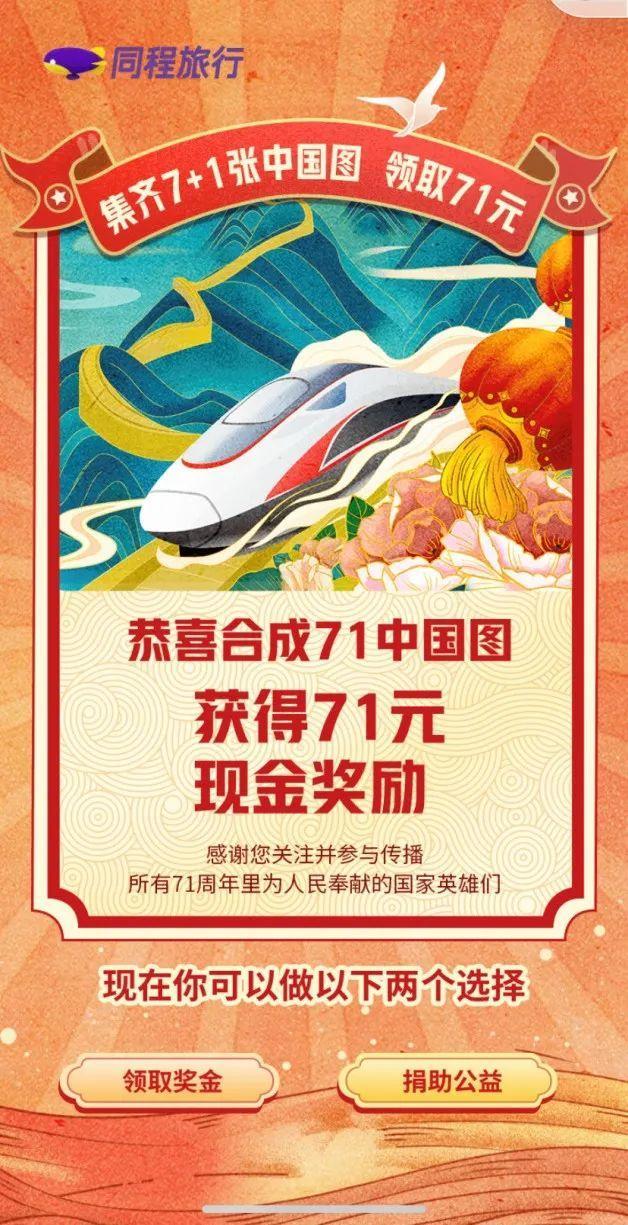 是一个特值得每个人参与的活动,充满爱国情怀!与此同时,还满载着同程旅行的诚意,玩同程71中国图活动就有机会获得71元现金/同程优惠券!