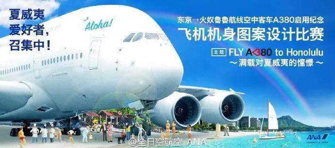 所以同样今年,为了纪念ANA在东京-火奴鲁鲁线启用巨无霸A380,以“Fly A380 to Honolulu”为主题,ANA也在全球征集机身彩绘设计。