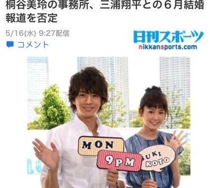 对于桐谷美玲与三浦翔平的恋爱,粉丝纷纷表示祝福并催促结婚