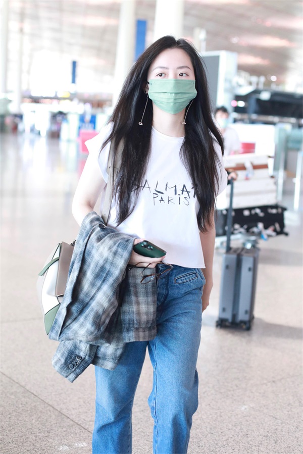 张靓颖素颜走机场 身型微胖昂首阔步状态超好