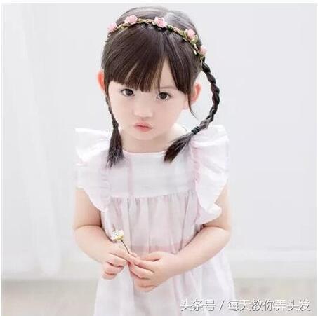 虽然是双马尾,这款马尾辫采用的是三股编发的方法,大家一定都会。关键的是刘海的长度一样要盖过一侧眉毛,这样才俏皮可爱。戴上可爱的小花环,更是迷人呢。