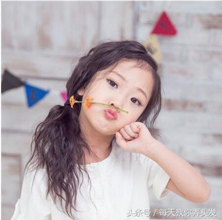 稀疏的发量,柔软的发质,给人感觉非常轻盈。这款小女孩的发型,是时下非常流行的玉米烫,一次性的玉米烫发,更加自然蓬松。扎成可爱的斜马尾,衬托小女孩精灵般的俏皮感。白色的棉麻上衣,给人一种非常舒服的视觉效果。