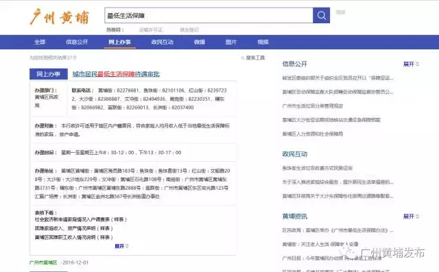 新版网站通过一键搜索,能集中查询黄埔区内各部门政务资源,包括区政府各部门信息公开、网上办事事项、公众互动信息、黄埔发布微信微博、图片、视频等内容。