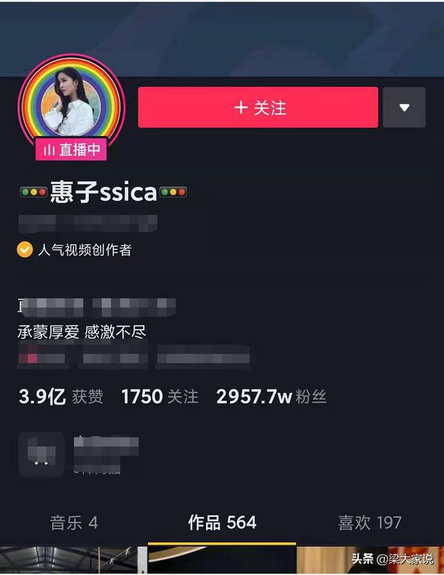 如今惠子已经坐拥2957.8w粉丝,作品点赞量高达3.9亿,几乎每条作品都是10w+的。所以,说惠子是某音网红一姐,真的不为过。