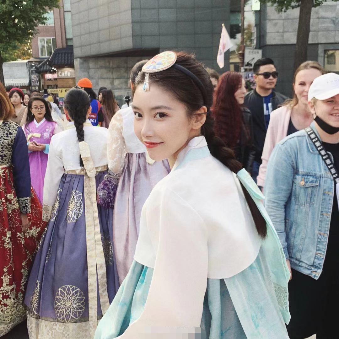 肤白貌美,身材纤细、妥妥的小瓜子脸不用说,鼻梁高挺,眼睛灵动有神,搭配清新甜美的妆容和造型,仿佛完美再现了初恋女神的模样。