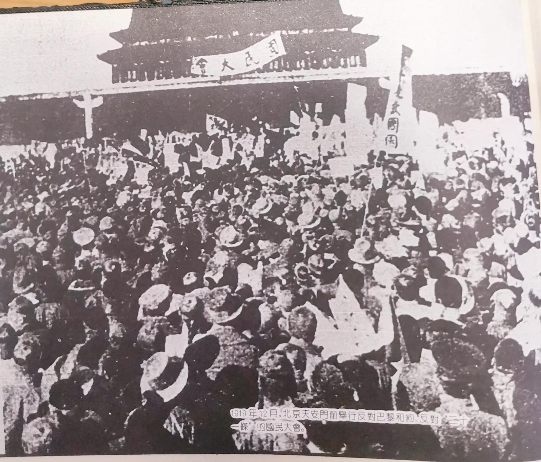 1919年12月,北京天安门前举行反对巴黎和约、反对“二十一条”的国民大会