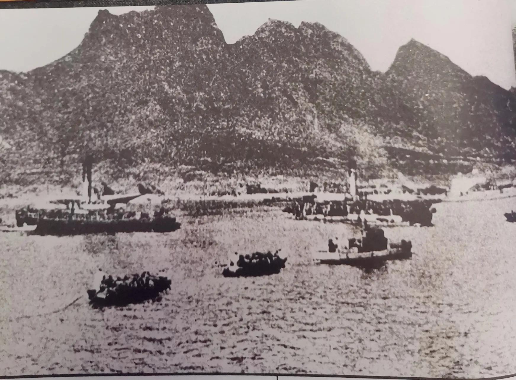 日本军舰运载攻击青岛的陆军,在山东崂山湾登陆。