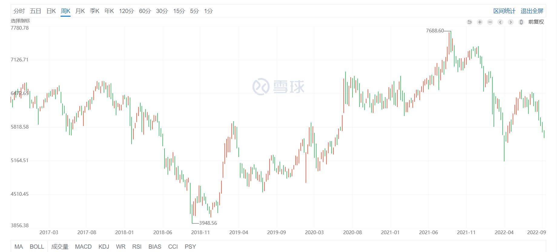 相对比沪深300的选择方法,本次笨鸟结合了一下中证500指数的走势情况,从走势上来说2018年10月份正好是近6年的最低点,而2021年9月是近6年的最高点,举例现在的10月份,差距基本上是在整数年不远,所以本次选用的收益率年份是4年和1年的收益率作为对比。