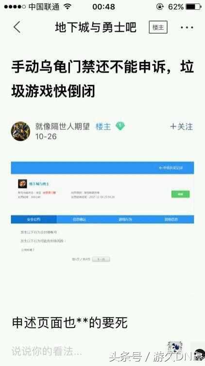 还是贴吧老哥,吐槽自己误封,申诉界面也卡。