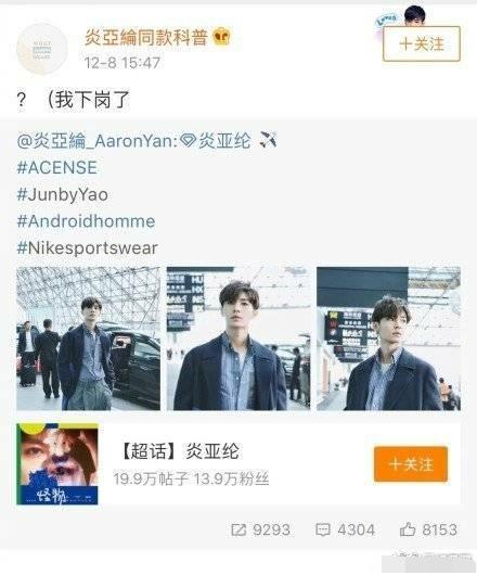 而且炎亚纶不止发帖,签到,应援,服饰穿搭品牌以及反黑通通自己来,……炎亚纶粉丝表示已失业