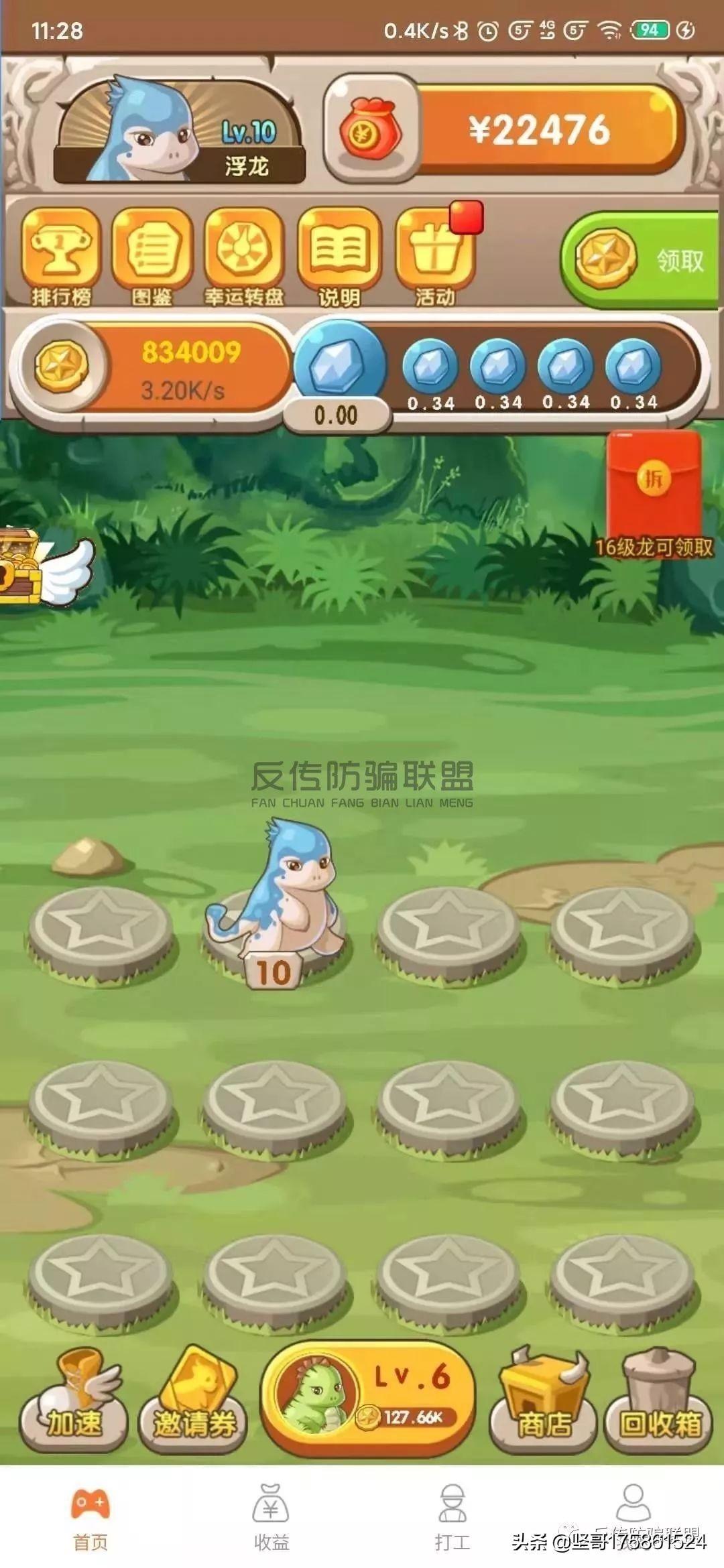 相信很多羊毛党们对陀螺世界这个手游并不陌生,对于陀螺世界的骗局反传防骗联盟已经曝光过多次了,而这个恐龙有钱和陀螺世界一样对外宣称“我们挣得是广告的钱!”