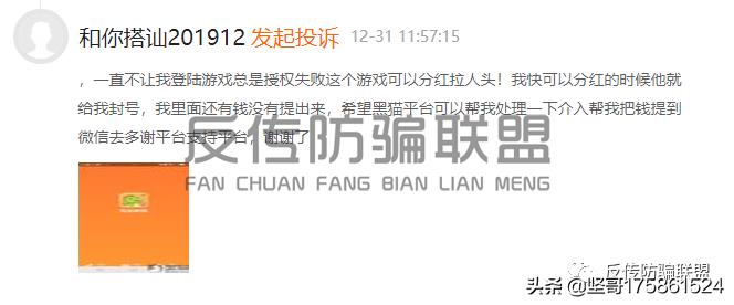 在黑猫投诉上,小编也看到了用户的投诉,该用户称恐龙有钱想要分红只能拉人头,而当你人头拉的差不多了快要可以分红的时候却被封号了,里面的钱也无法提现。