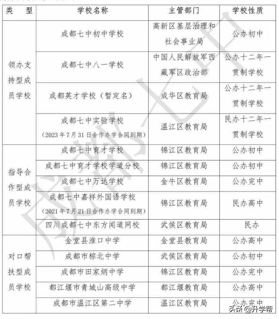 例如,位于高新区的七中初中,就是成都七中的领办学校;而昔日的民办天花板“七中嘉祥”,则为指导学校。