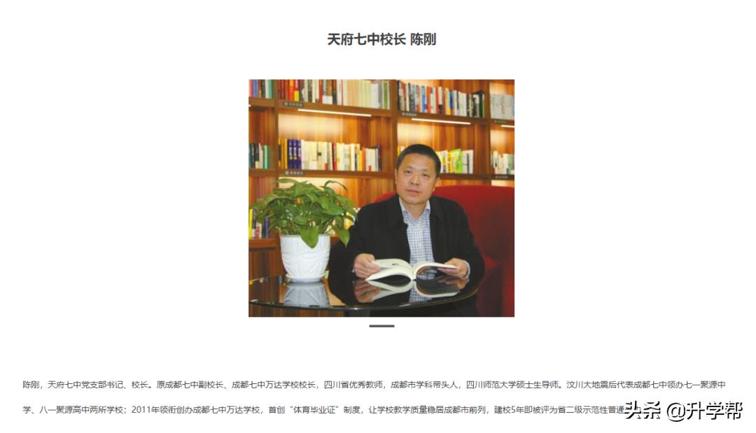 从管理团队来看,天府七中校长陈刚,曾经担任过成都七中副校长、七中万达学校校长之职;学校三位专家顾问戴高龄、王志坚、刘国伟,更是成都七中此前的三任校长。