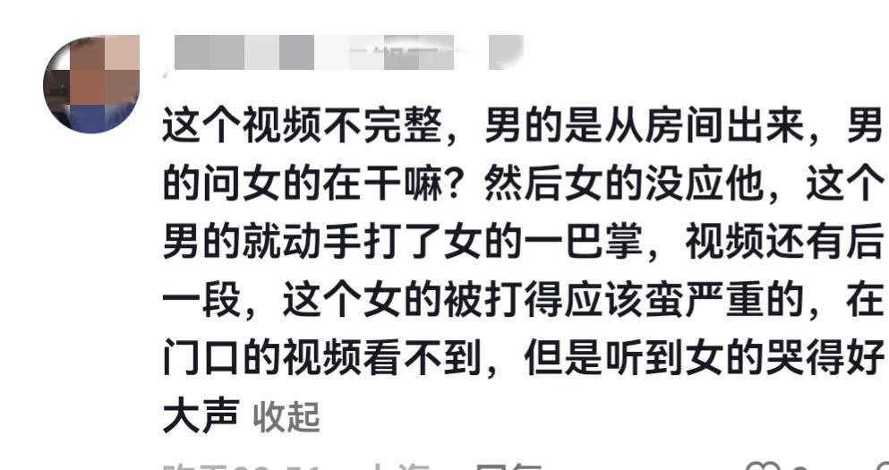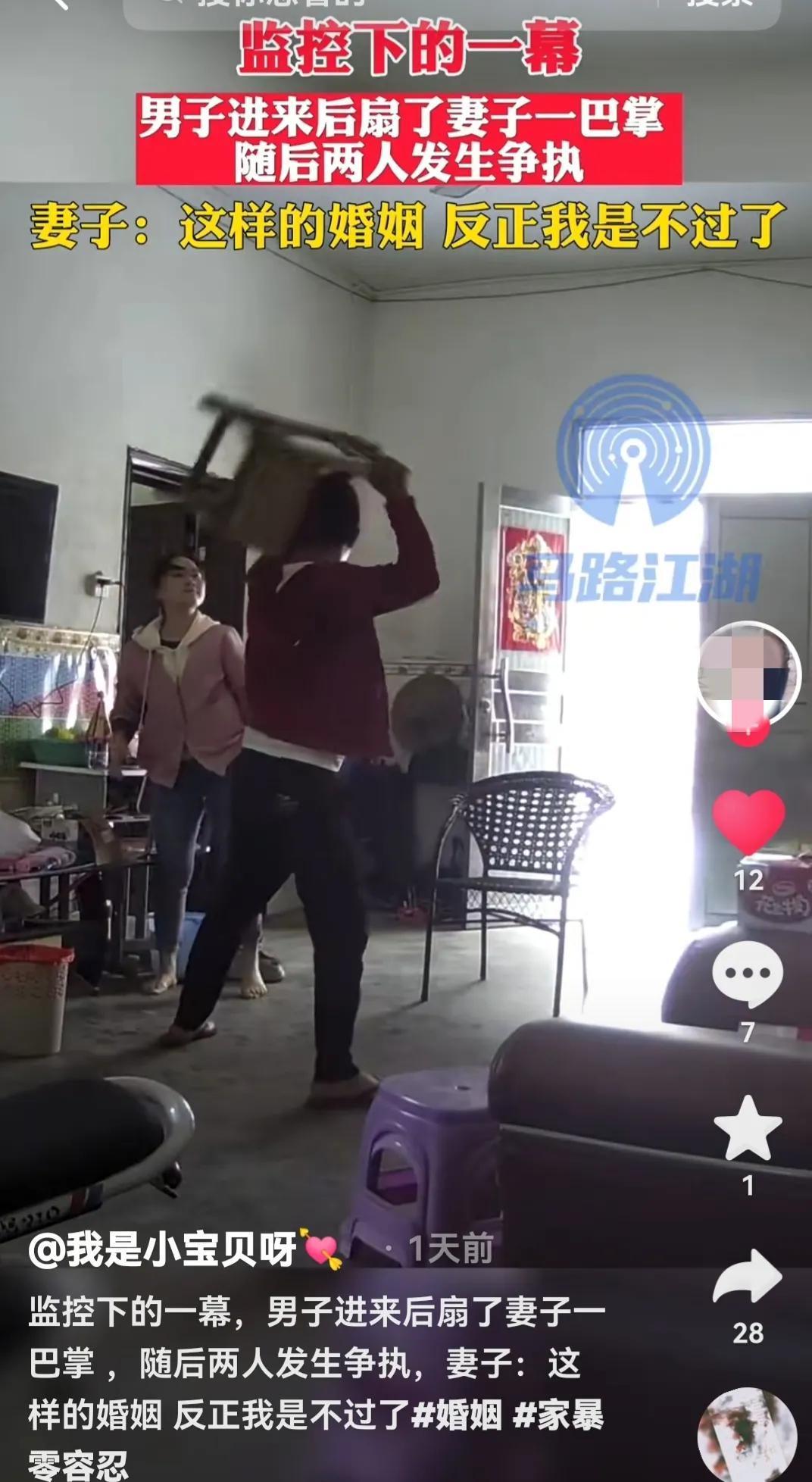 根据网友所说,男的是从房间出来,问女的在干什么,女子没有回应,这个男的就动手打了妻子一巴掌,妻子被打的很严重,视频后面还有一段可以听到女子的哭声。