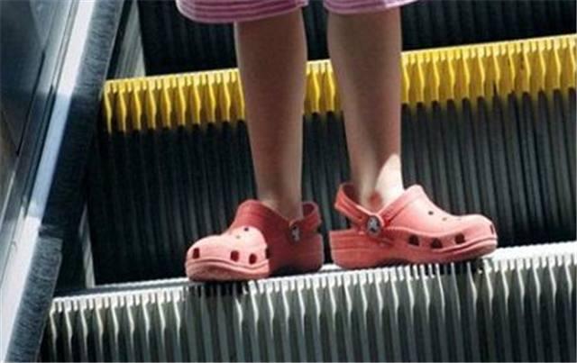 网友小熊说:别光说洞洞鞋,其他胶鞋也会被夹住的。因为扶梯是运动的,扶梯侧面是静止的,所以凡是摩擦力大的鞋,贴在扶梯侧边,鞋随阶梯运动,贴在侧面的鞋底或鞋帮都会由于摩擦力而被卷入缝隙。