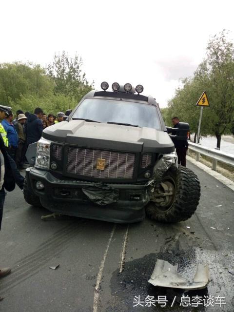 乔治巴顿左边的轮子已经掉了,K3左脸面目全非,两辆车不同程度受损。标准版乔治巴顿长5.9米,宽2.47米,高2.49米,起亚K3,长4.6米,宽1.78米,高1.45米,乔治巴顿比K3高1米多,这是1.45米和2.49米的较量,其实是乔治巴顿先撞了护栏,然后猛打方向盘,然后撞上了正常行驶的K3,而且乔治巴顿根本就不是防弹车!
