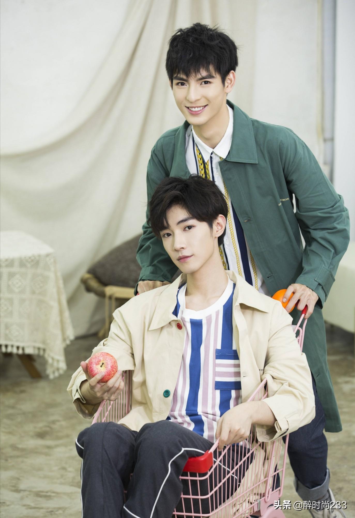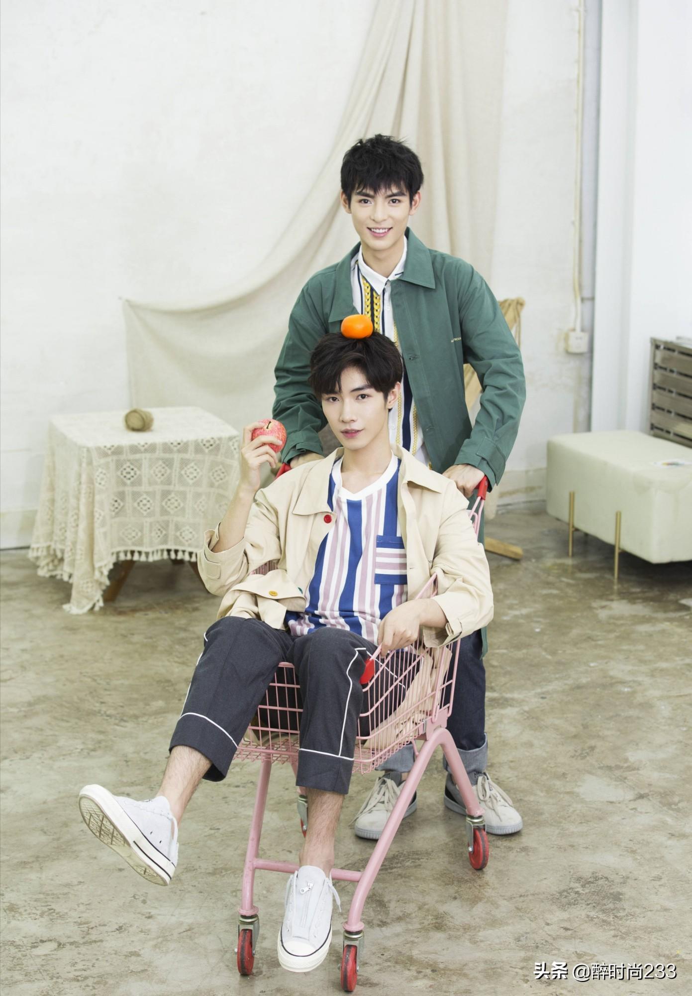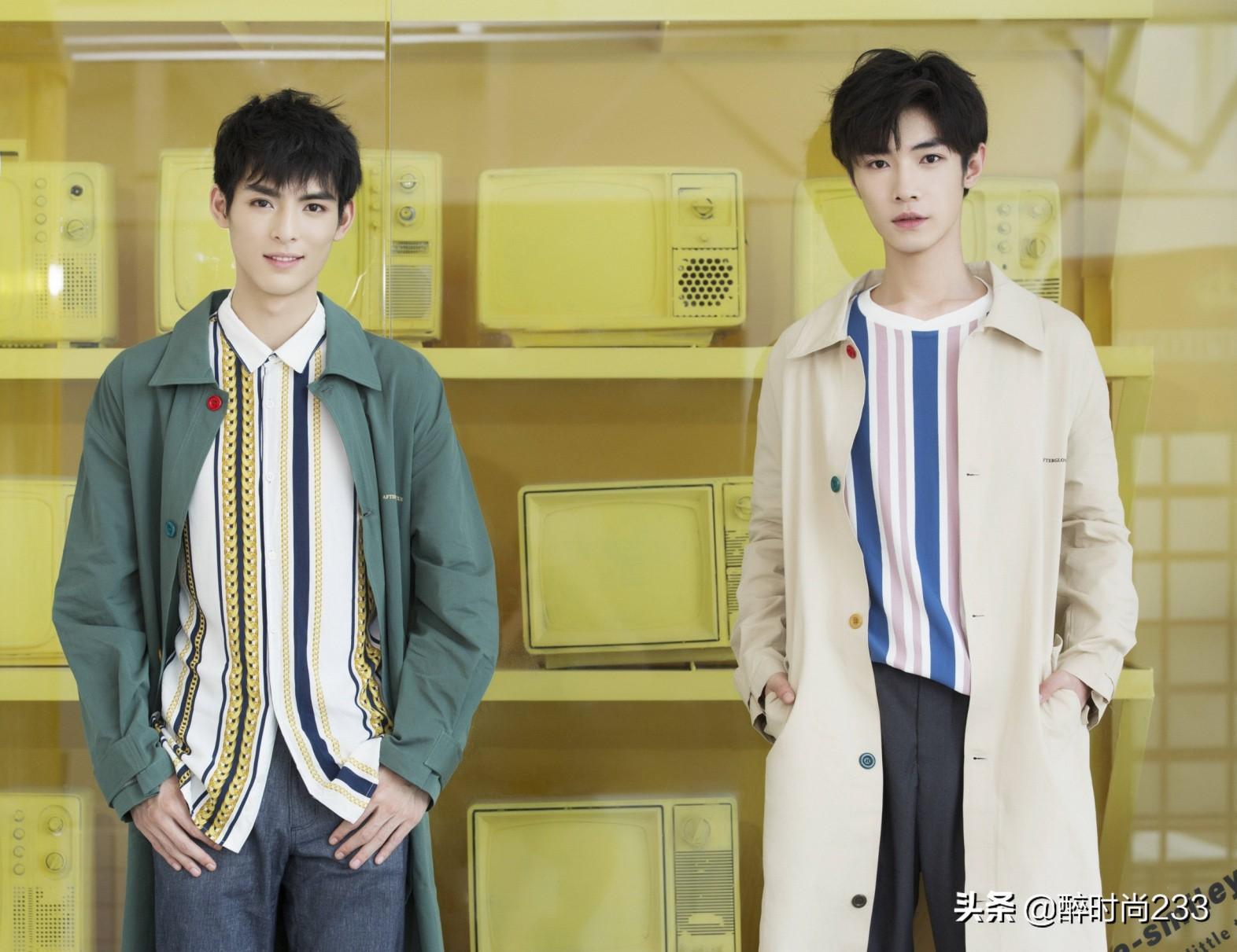 在这组两人拍摄的写真照片中,我们可以看出两人穿的是同款外套风衣,宋继扬穿的是米色的,而王浩轩则选择的偏向灰色系一点的绿色,内搭都不约而同的选择了条纹衫,看上去真的是CP感满满啊,终于让广大粉丝在戏外满足了对这对在戏中虐到不行的CP。