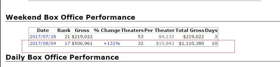 除了国内电影飘过一路走高外,《战狼2》在北美票房也迎来了全面复苏和走高,在上映3天仅取得19万美元的情况下,《战狼2》后续7天内票房涨幅超130%,成功突破百万美元。
