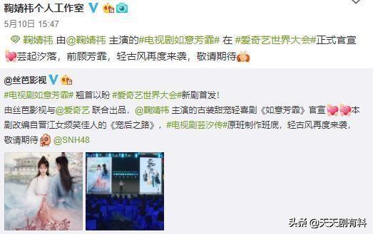 第一部:《如意芳霏》根据晋江古言大神笑佳人小说《宠后之路》改编,丝芭影视与爱奇艺联合出品,鞠婧祎饰演女主角傅容。
