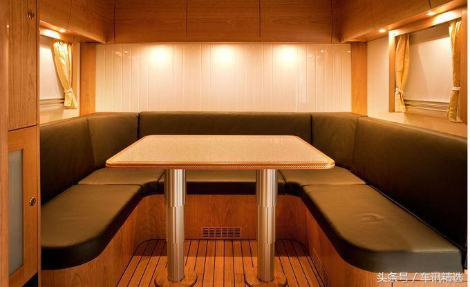 内饰小编我只能用极其奢华来形容!想说说这辆车的空间布局吧,有卧室、浴室、厨房、客厅一应俱全,令人惊喜的是,这辆移动豪宅还有吧台,这配置简直就是高大上啊!