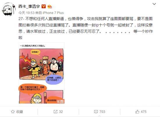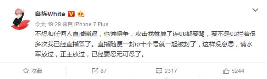 事件大概是这样的,五五开女友UU小号暗指笑笑西卡在请水军开喷,有不少喷子在五五开直播间喷UU。笑笑发微博表示“无意苦争春,一任群芳妒”,笑笑老婆“我们跟你五五开夫妻心掏心,你们却这样做”。于是五五开女友UU反击了,五五开表示“表面上和我谈兄弟,但别背后请水军连女孩子都骂”,西卡也将其翻版后进行回应,最后一句是“等一个炒作啦”电竞圈真是乱啊,斗鱼TV主播五五开、笑笑曾是兄弟,如今竟然...