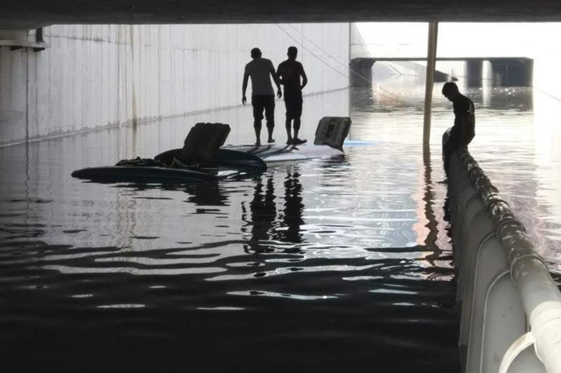 郑州暴雨积水严重!大巴车过隧道被3米深积水淹没