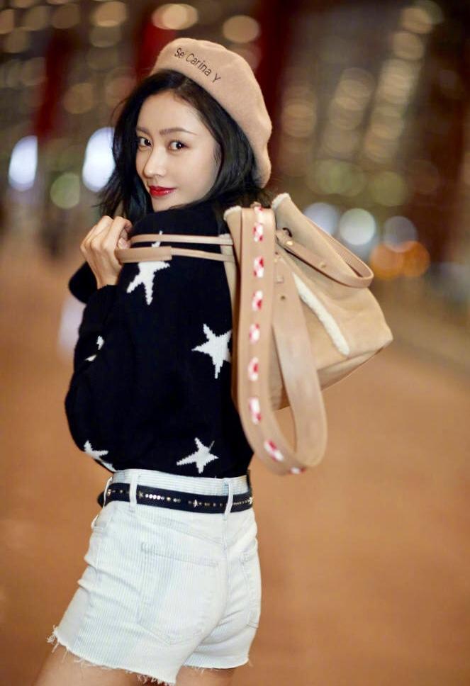 太子妃张天爱也是在出发时装周时用贝雷帽凹造型,精致的颜,同色的帽子和包包毫无违和感!