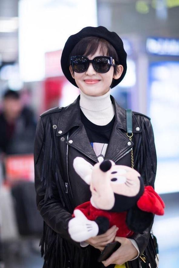 古力娜扎,戴贝雷帽的机场街拍也是美美哒!