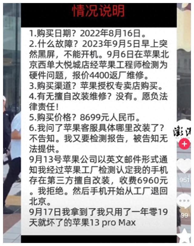 这起事件不仅引发了对苹果公司售后政策的质疑,也让人们重新审视了消费者权益保护的现状。不少人纷纷发表评论,对这一问题表达了自己的看法和建议。一些网友认为,这不仅仅是苹果公司的问题,也应该引起整个行业的反思,呼吁建立更加公正、透明的维修体系,保护消费者的合法权益。