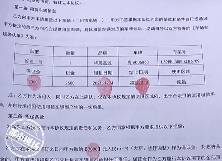 南昌市民邓先生:我花了7000块钱的一个月押金,2600块钱的租金,一共9600元。从租车起到现在跟他们跑过一趟货,跑过一趟就把我开了,他说我送太慢了。