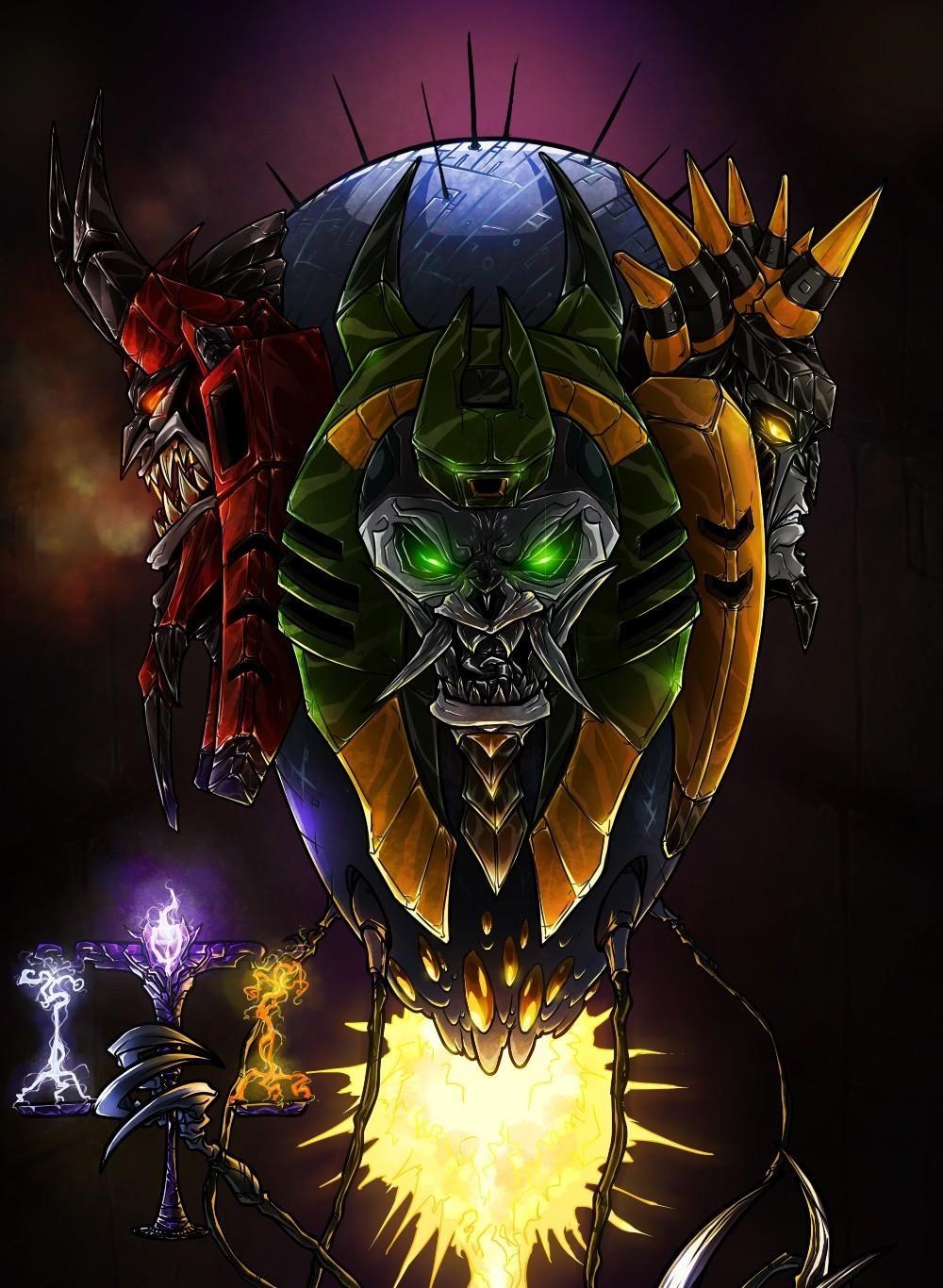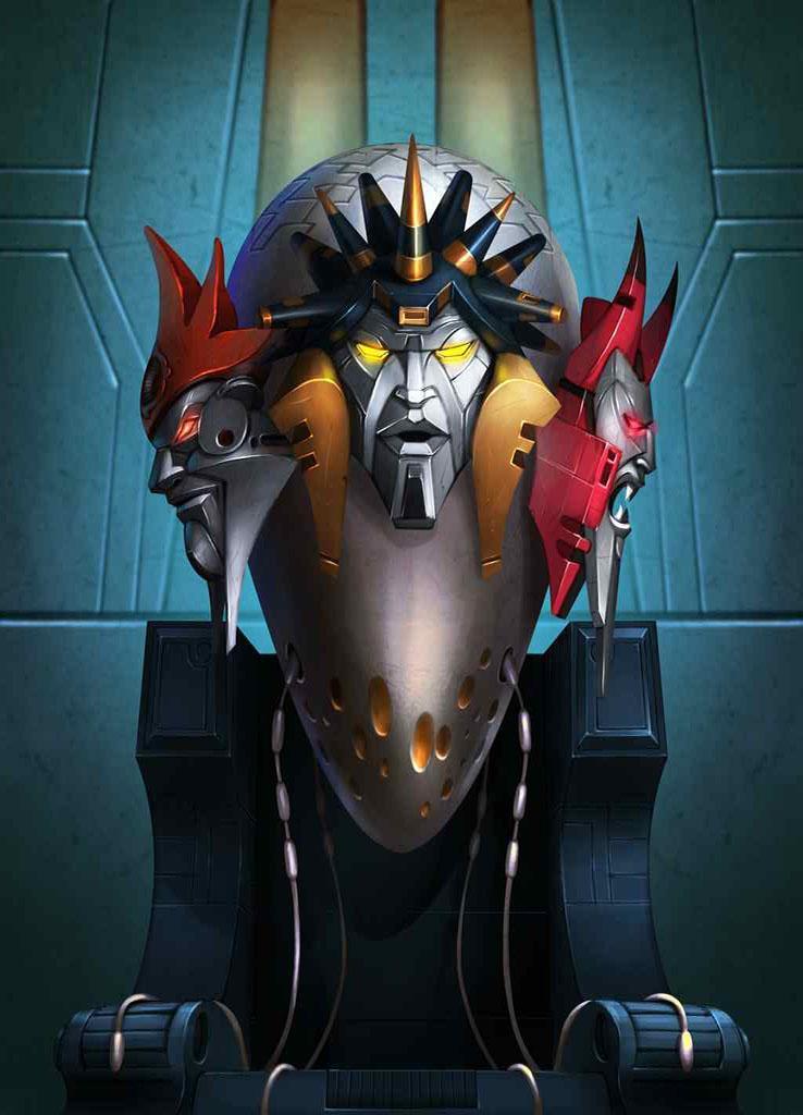 不过根据新的设定,五面怪现在也算是变形金刚了,他们是十三元祖金刚之一的无常天的后裔,无常天是长这个样子的,嗯,确实和五面怪很相似,这这么说来无常天离开赛博坦后发展了五面怪一族,然后五面怪回赛博坦索要产权也是可以理解的了。说起来G1最后擎天柱在领导模块中寻找破解疯狂病毒的方法时,最后出现的几张面孔确实和五面怪有些相似。