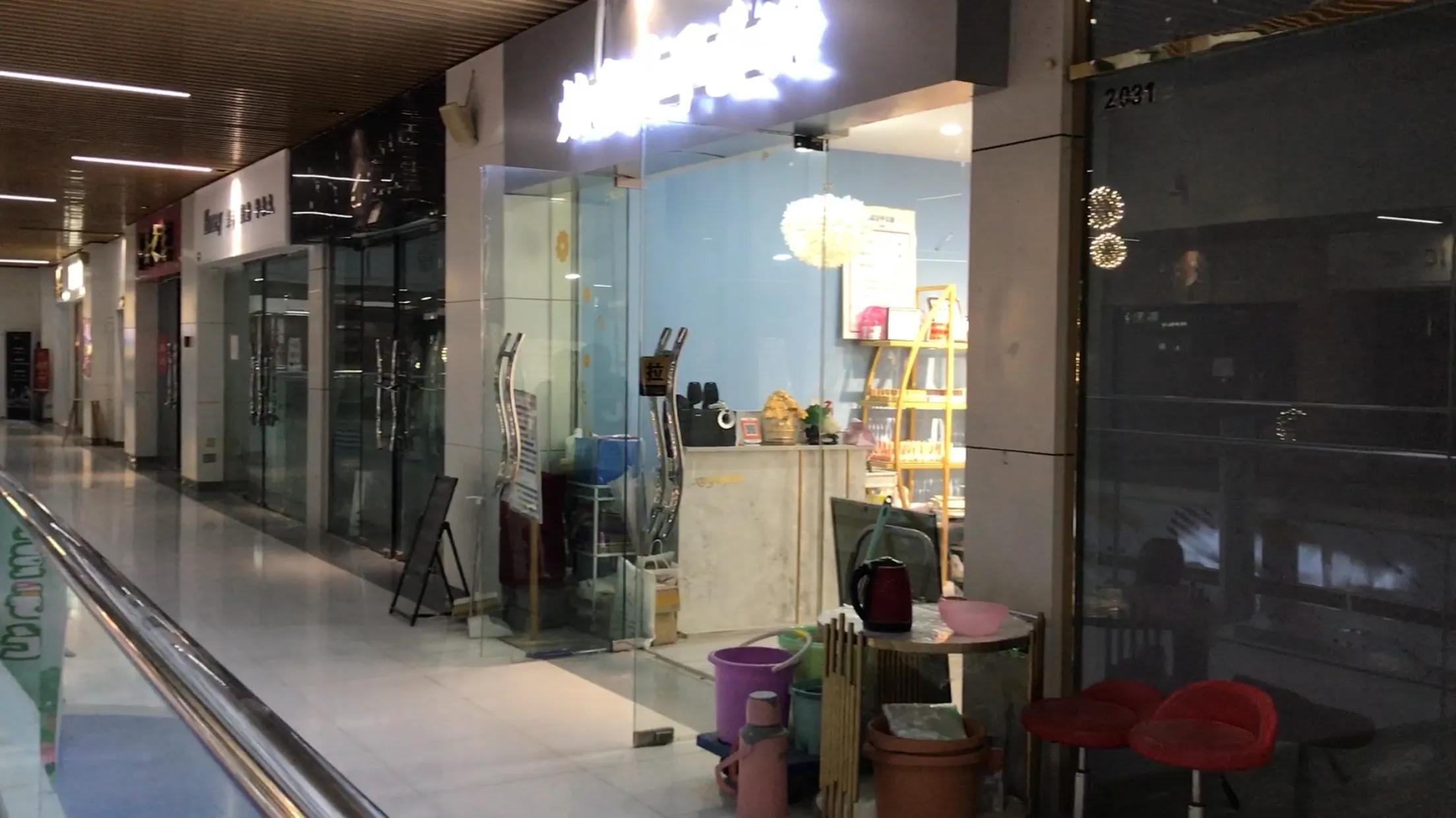 走在A区的北街一层,空空荡荡,鲜有人光顾,各个商家都是门可罗雀,已经有部分商家撤店,门上贴着“房东直租”。
