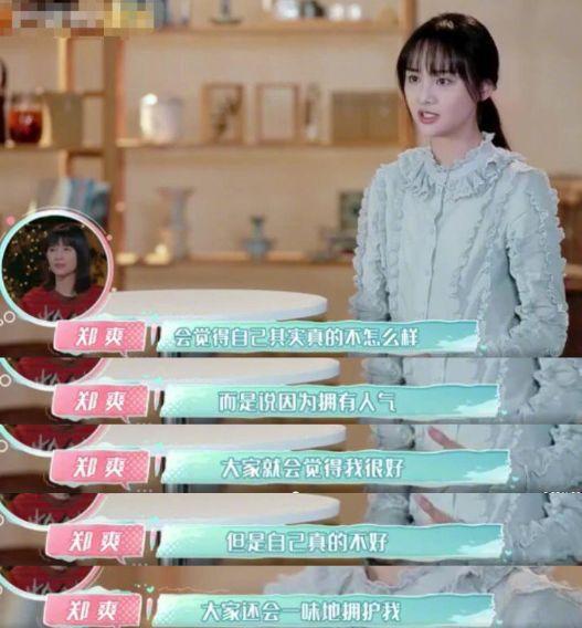 除此之外,郑爽对不被大家看好这件事也看得很通透,她觉得这是因为自己拥有人气,但一味用户反而让她没有安全感,因此她想让大家看到自己的不好,让他们知道自己到底是怎么样的人。说实话,这样的明星才值得粉丝去喜欢,而不是让粉丝沉浸在被经纪公司包装的假象中,郑爽这不仅仅是在对自己负责,更是对那些喜欢自己的粉丝负责。