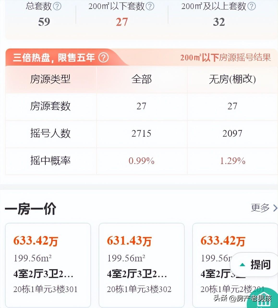 当然,这类房子基本上和普通的刚需购房者无缘了,且不说能不能摇中号,即便摇中了,买不买得起同样是一个问题。毕竟六七百万一套的房子和一两百万一套的房子需要的资金量有着天壤之别。