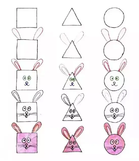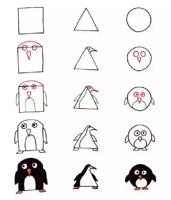 「简笔画」用三角形、长方形、圆形竟能画出各种小动物!