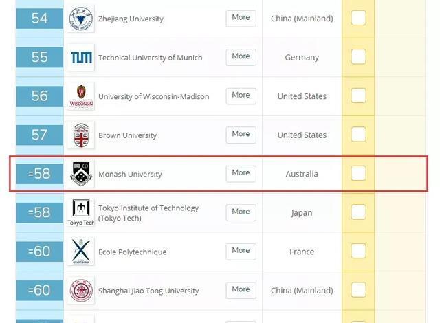 莫纳什大学排第58,逐年稳步上升