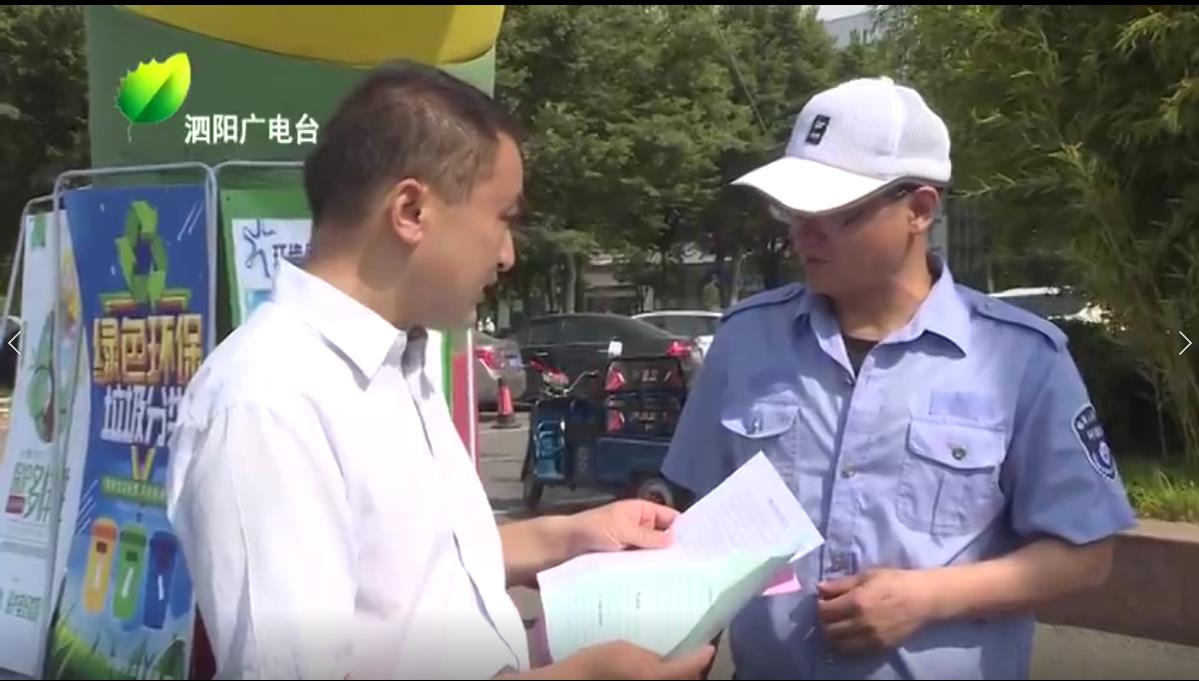 【口播】为了加强人们的环境保护意识,提倡人们关注环境生活,守护我们的蓝天,今天上午,泗阳县生态环境局开展了系列宣传活动,倡导市民保护环境,从我做起。