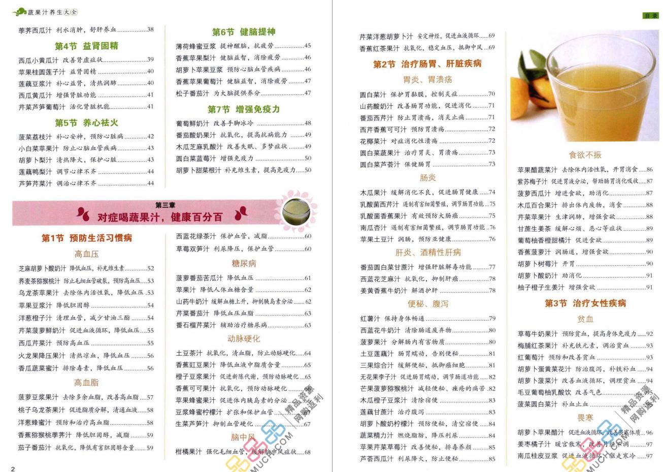 下面和小阿姨一起看看蔬果汁食谱里面的部分内容: