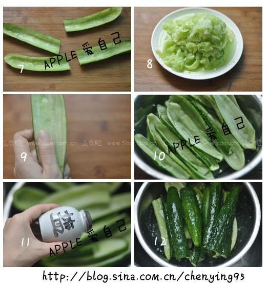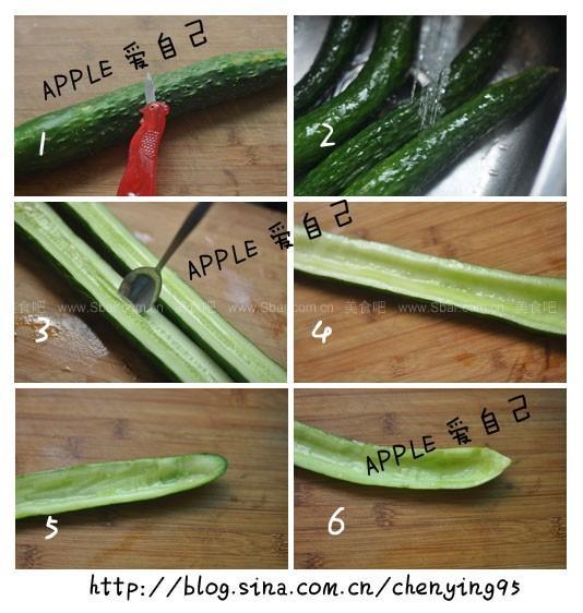 5、6、肉厚最好不好超过0.5厘米,有些黄瓜肉厚就多挖掉点肉,黄瓜两头也要仔细弄好哈