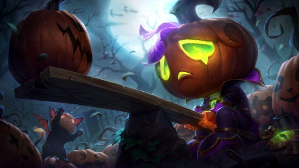 阿木木的新皮肤也很好看,原本的绷带脑袋变成了眼睛含泪的南瓜头,独自一人和一个南瓜玩跷跷板,身边还有一些画着各种表情的南瓜。老实说拳头有点过分了,真的就可着阿木木一个人迫害,几乎所有阿木木的新皮肤都是在哭,以前的那些还好,这次的新皮肤盯时间长了,真的会让人觉得有点小小的不舒服。