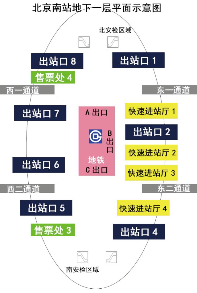 即可到达北京南站地下一层