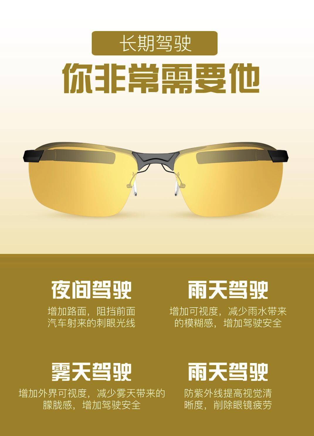 夜视镜,一听就是夜间用的,这是一个专为司机朋友设计的一款眼镜,可以有效的在夜间行车时,避免对方来车的强光灯刺激眼睛,还能过虑有害的短波蓝光对眼睛的伤害,还可以夜间光线不强的情况下,提亮视野,因为这是一款偏光眼镜,在白天阴雨,雾霾天气时,根据眼镜镜片的偏光角度与弧度依据精密光学原理设计,只允许同方向的光通过,反射过来的光被过滤,从而消除外来光线的干扰,避免眼花,眩目,刺眼等现象,使视野清晰。